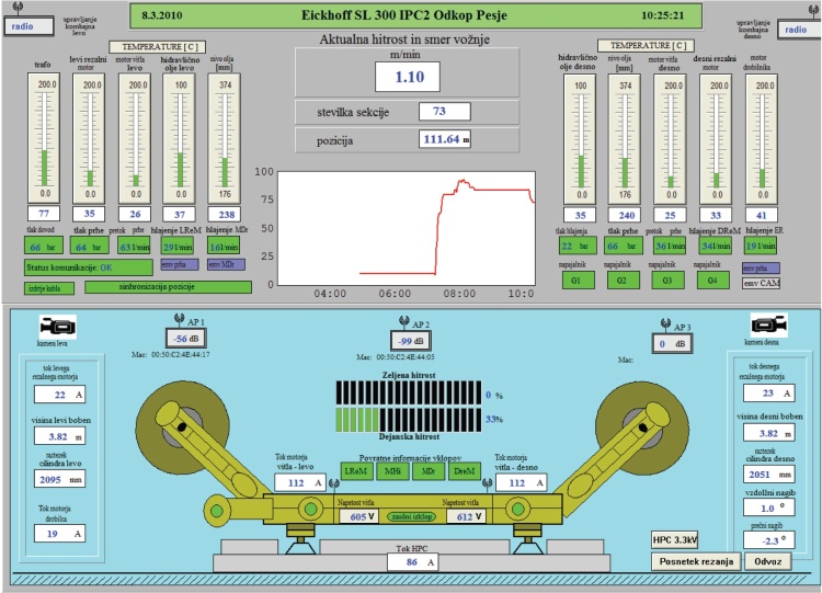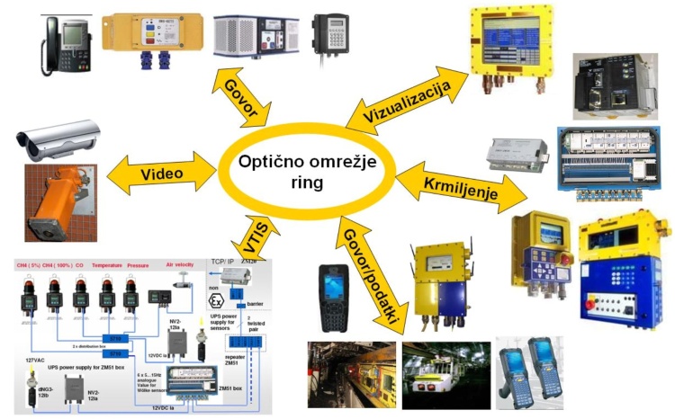 • prenos podatkov na površino premogovnika (optična vlakna, kabli),