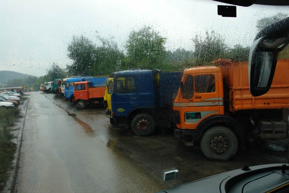 Kolone tovornjakov pred rudnikom Mramor čakajo na premog, ki ga vozijo v Termoelektrarno Tuzla