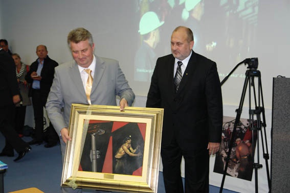 V spomin na sodelovanje je dr. Medved direktorju Rudnikov Kreka Rešadu Husagiću izročil umetniško delo