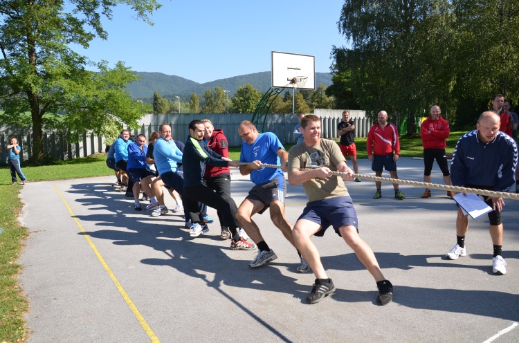 vlečenje vrvi, spretnosti z vodnimi baloni in tek na smučeh.