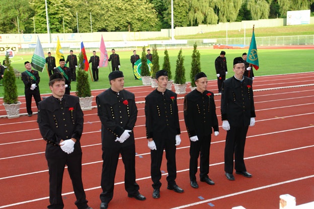 Parada uniformiranih rudarjev prihaja na mestni stadion