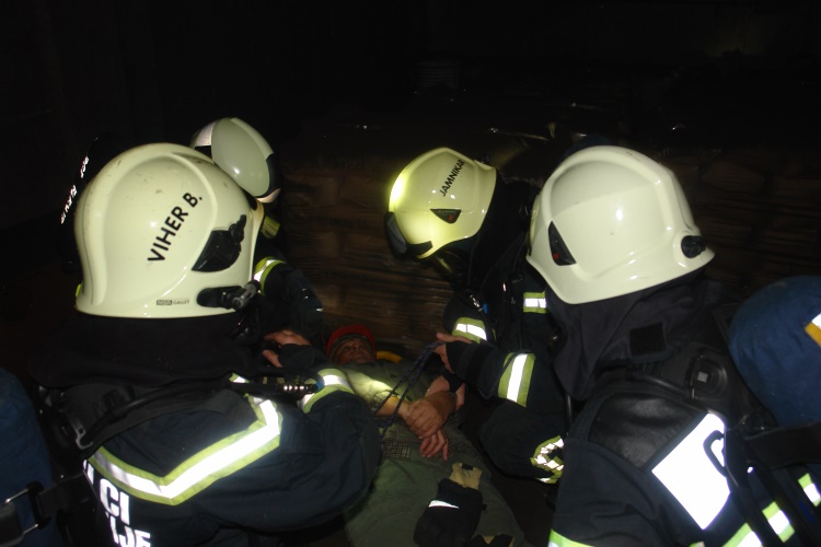 V objektu sta bili ujeti dve osebi – ena z odprtim zlomom noge, druga nezavestna in s poškodovano glavo.