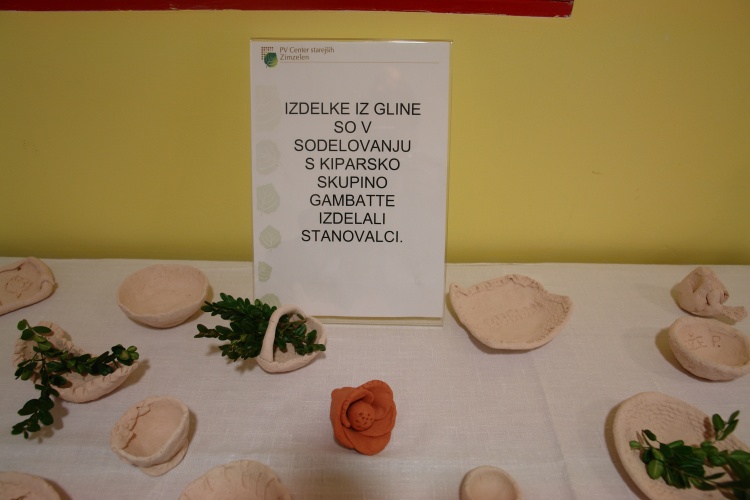 Izdelki iz gline, ki so jih v sodelovanju s kiparsko skupino Gambatte izdelali stanovalci Zimzelena.