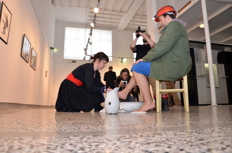 V Muzeju je predstavila performans »umivanje nog«, s katerim je izkazala odnos umetnika v okolju rudarjev.