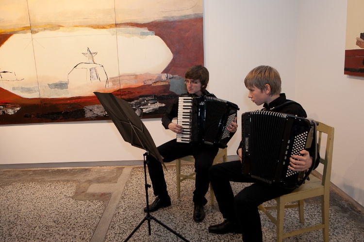 Odprtje razstave so popestrili učenca in dijakinja Glasbene šole Frana Koruna Koželjskega Velenje. Na harmoniko sta v duetu zaigrala Nejc Zajc in Slavko Lesnik.