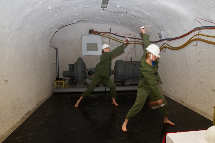 Kot protiutež avtentičnemu prostoru nekdaj delujočih rovov pod Starim šahtom sta s svojo predstavo navdušili plesalki Plesnega studia N Lucija in Polona Boruta,
