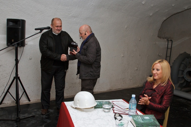 Predsednik Uprave Premogovnika Velenje dr. Milan Medved je avtorju Petru Rezmanu v spomin na ta dogodek izročil posebno darilo