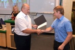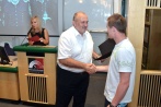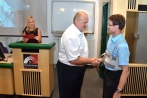 V šop povezano nabrano žito je poklonil vodji proizvodnega področja in glavnemu tehničnemu vodji Ivanu Pohorcu z besedami: »Naj to seme, ki so ga simbolično zasejali mentorji, bogato obrodi!«