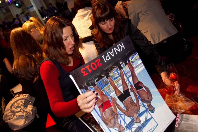 Fotografije rudarjev v spodnjicah s pomenljivimi napisi smo uporabili za stenski koledar Knapi 2013, ki je vključeval tudi dobrodelno noto.