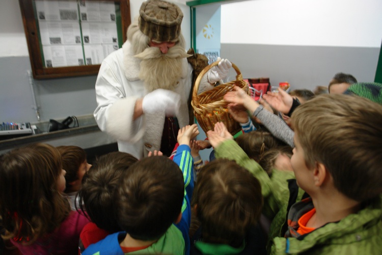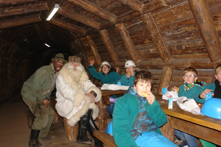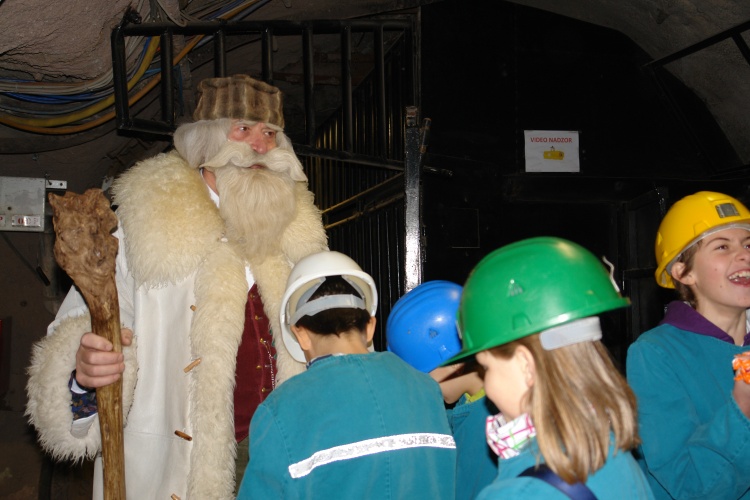 Za posebno presenečenje je v najgloblje ležeči jedilnici v Sloveniji poskrbel dedek Mraz, ki je razveseljeval otroke tudi v zunanjem delu muzeja.