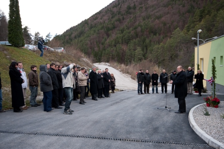 Trak so slavnostno prerezali župan Srečko Meh, direktor RGP-ja mag. Hudej ter direkor Premogovnika dr. Medved
