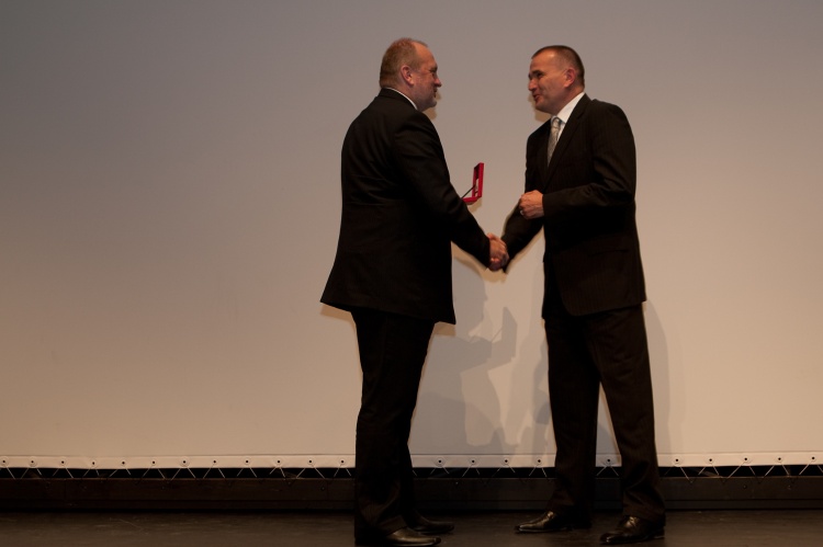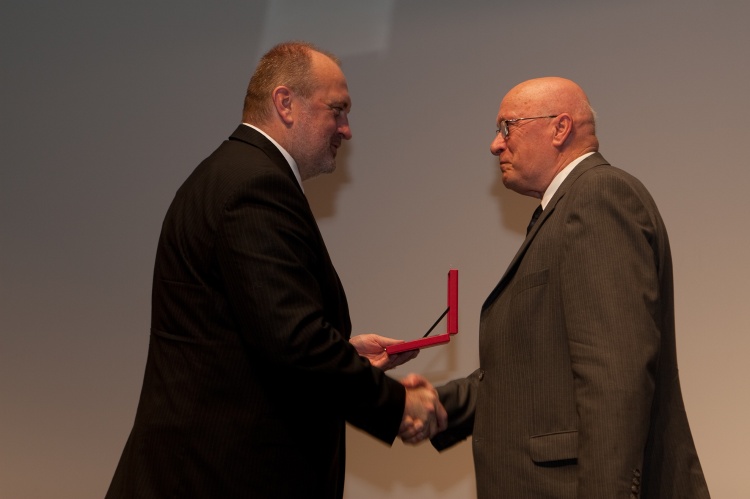 Podelitev spominskih priznanj iz ksilita, in sicer dr. Francu Žerdinu