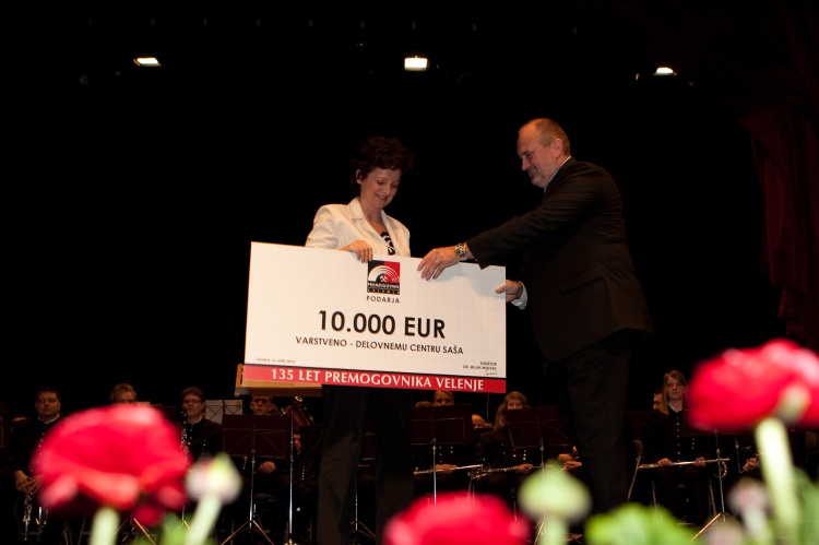 Predaja čeka direktorici Varstveno delovnega centra SAŠA, Darji Lesnjak