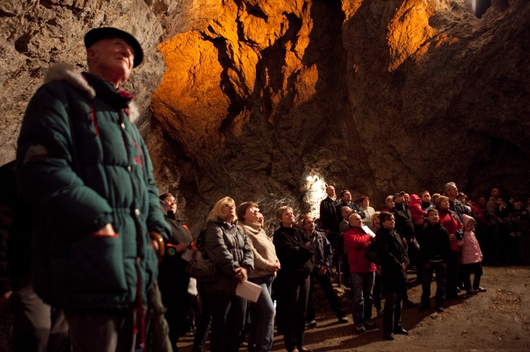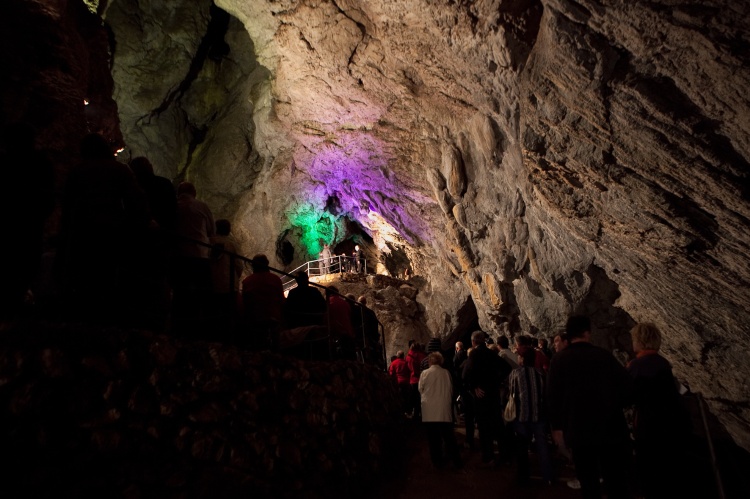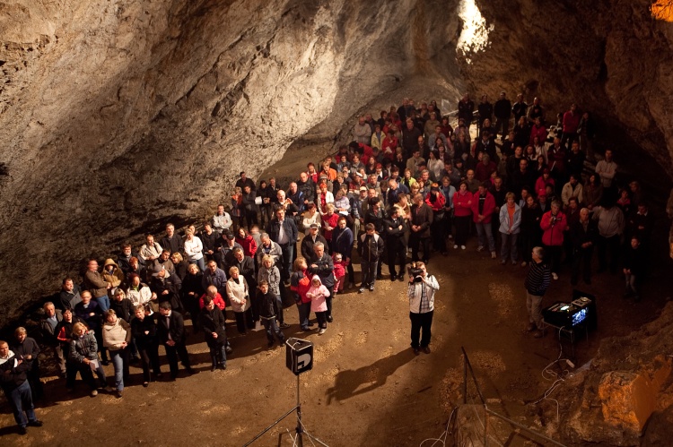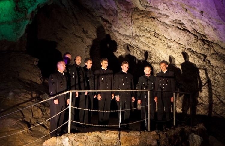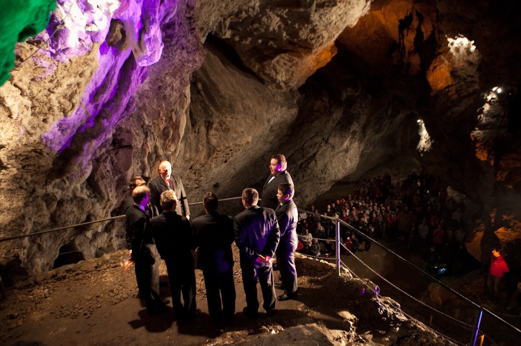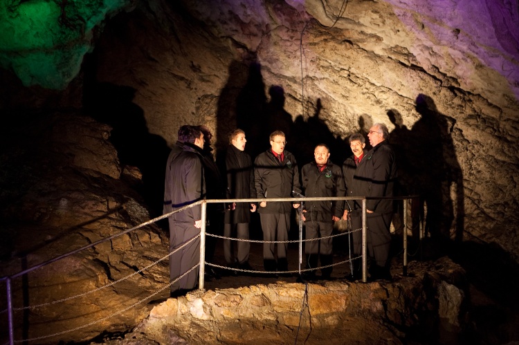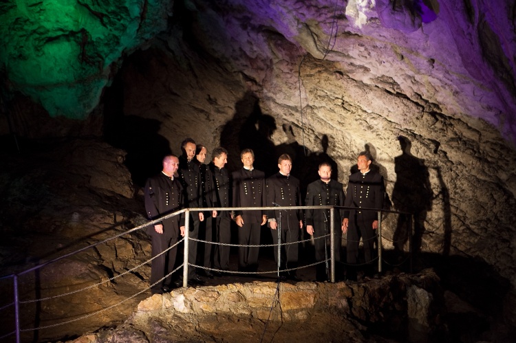 Koncert Oktetov treh slovenskih pokrajin je bil v čudovitem okolju podzemske jame Huda luknja.