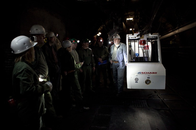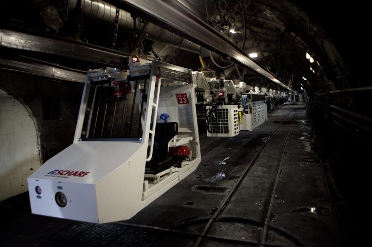 V Premogovniku Velenje smo v centralni remizi zagnali novo visečo dizel lokomotivo Scharf, dolžine 37 metrov.