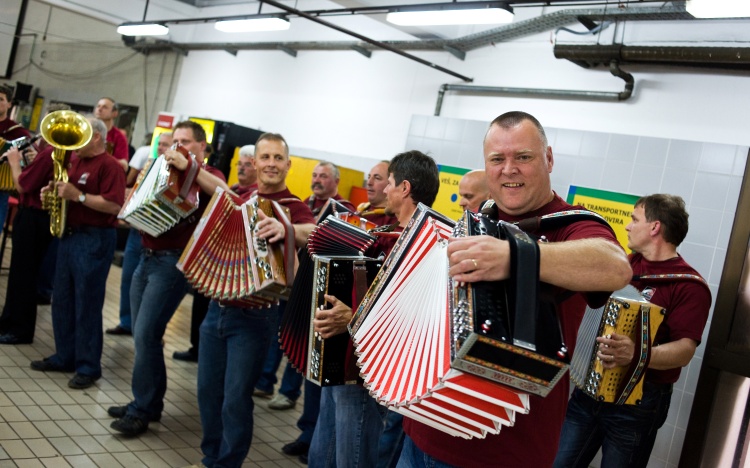 Prihod rudarjev iz jame je z zvoki pospremil Harmonikarski orkester Barbara Premogovnika Velenje.