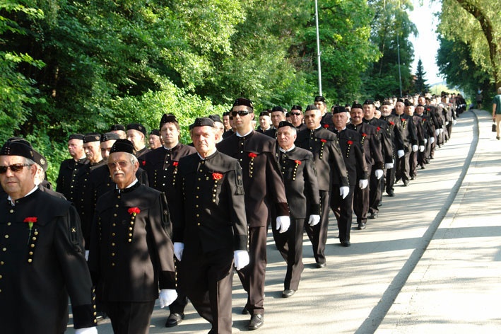 Ob veselih in žalostnih slovesnih dogodkih rudarji oblečejo svoje stanovske uniforme. Rudarsko uniformo sestavljajo črne hlače in suknjič, črna kapa in bele rokavice. Posebnost je 28 zlatih gumbov na suknjiču, ki naj bi simbolično predstavljali starost sv. Barbare, zaščitnice rudarjev, ko je umrla.