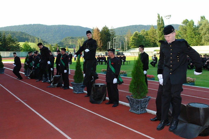 Ko vsi novinci opravijo skok, dajo svečano zaobljubo, da bodo pošteno opravljali svoj poklic in spoštovali tradicije stanu. Mlajši generaciji šolajočih rudarjev predajo ključ in svetilko, nato izpijejo vrčke s pivom in vzkliknejo: "Naj živi nam večno, naš rudarski Srečno!"