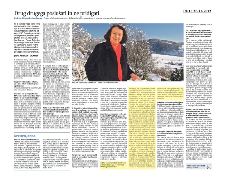 V prilogi oz. na spodnji povezavi lahko preberete celoten pogovor s prof. dr. Aleksandro Kornhauser – Fraser, ki so ga pripravili novinarji časopisa Delo.