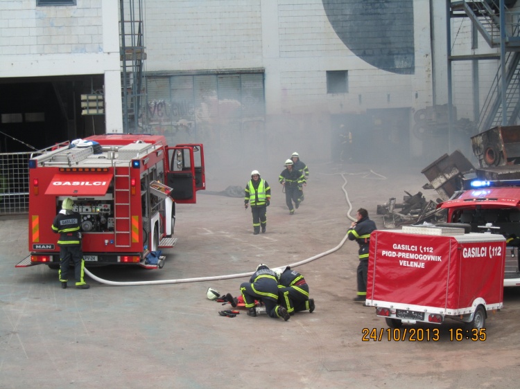 V mesecu požarne varnosti, 24. oktobra 2013, so člani Prostovoljnega industrijskega gasilskega društva Premogovnika Velenje izvedli nenapovedano gasilsko vajo. Predpostavka vaje je bil požar na objektu 300 Klasirnica. V požaru je bila poškodovana ena oseba. Na sklic se je odzvalo osemnajst gasilcev z dvema voziloma – GVC 24/50 in GVM 1 – v pripravljenosti so bili tudi v Gasilskem domu Premogovnika Velenje. Na kraju požara so našli eno osebo, jo prenesli na varno območje in oskrbeli. Vaja je bila usklajena z Vodjo proizvodnega področja in glavnim tehničnim vodjo Ivanom Pohorcem in Službo za varnost in zdravje pri delu referentom za požarno varnost v Premogovniku Velenje Dušanom Reberčnikom. V akciji sta se poleg gasilcev izkazala tudi dežurni Premogovnika Velenje in Služba varovanja HTZ Velenje. Vaja je znova potrdila dobro strokovno usposobljenost gasilcev za posredovanje v izrednih razmerah.