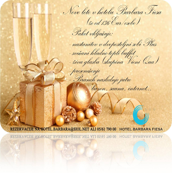 Silvestrovanje v Hotelu Barbara v Fiesi že od 136 evrov na osebo. Več informacij najdete v priponki.
