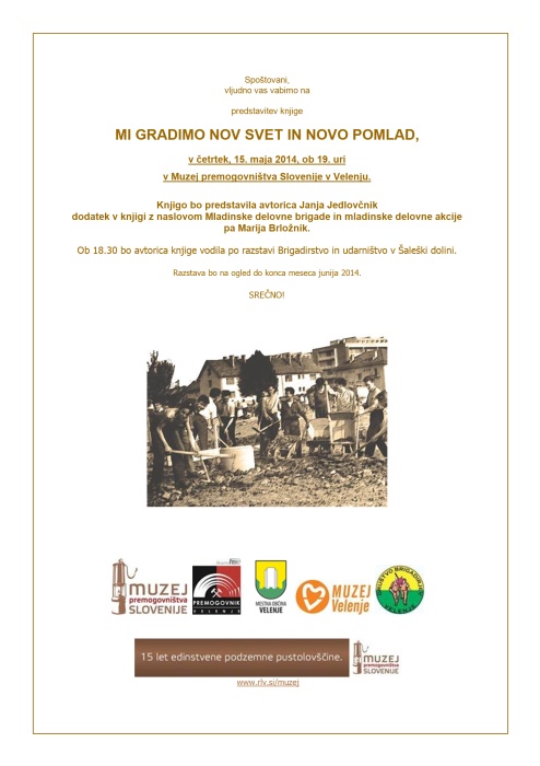 V Muzeju premogovništva Slovenije bo v četrtek, 15. maja 2014, ob 19. uri predstavitev knjige Mi gradimo nov svet in novo pomlad.