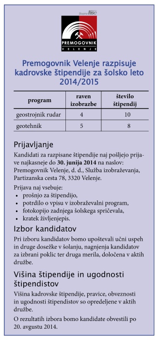 Premogovnik Velenje, d. d., Služba izobraževanja, Partizanska cesta 78, 3320 Velenje.