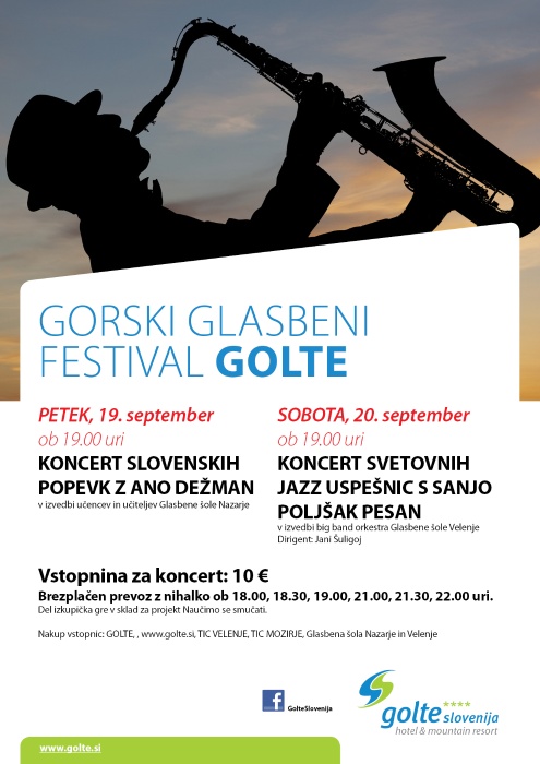 Rezervacija vstopnic na 03 839 11 00 ali golte-recepcija@golte.si. Prodaja vstopnic v velenjski in nazarski glasbeni šoli ter v Hotelu Golte.