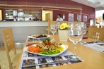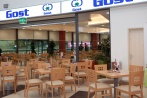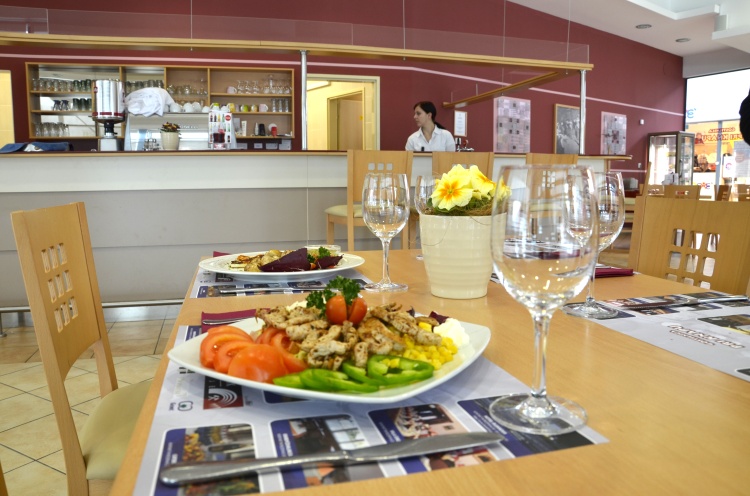 Meni 1: goveja ali gobova juha, svinjski zrezek v gobovi omaki, ocvrt puran, pražen krompir, dušen riž, zelenjava na maslu, mešana solata. Cena 12 evrov.