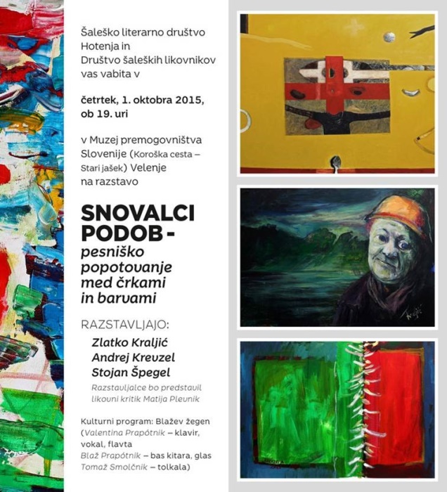 Šaleško literarno društvo Hotenja in Društvo šaleških likovnikov vabita v četrtek, 1. oktobra 2015, ob 19. uri v Muzej premogovništva Slovenije na razstavo Snovalci podob – pesniško popotovanje med črkami in barvami.