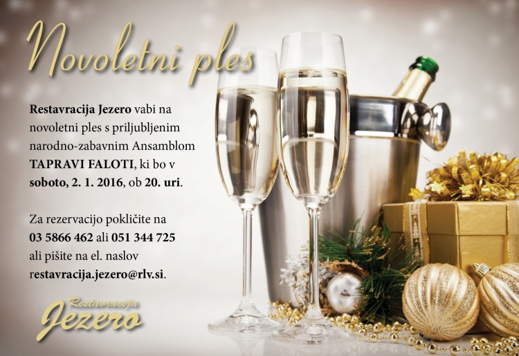 Restavracija Jezero vabi na novoletni ples s priljubljenim narodno-zabavnim Ansamblom Tapravi faloti, ki bo v soboto, 2. januarja 2016, ob 20. uri.