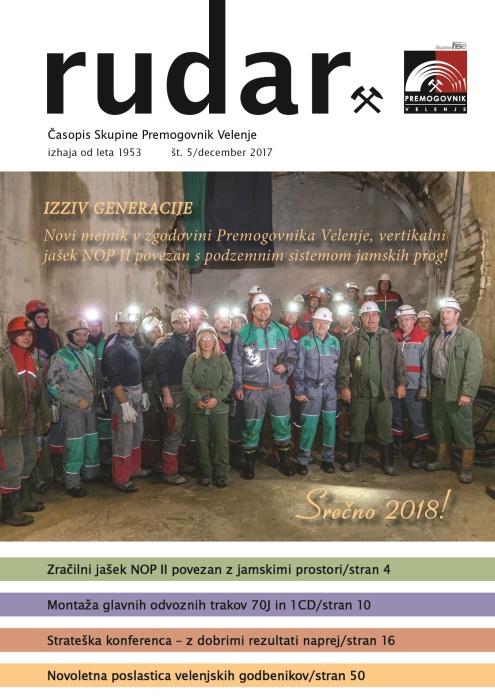 Zračilni jašek NOP II povezan z jamskimi prostori je naslov prvega članka v rubriki Z delom se vse doseže. Gre za izziv generacije, ki uspešno nadaljuje tradicijo več kot 142-letnega premogovništva v Šaleški dolini. O letošnji proizvodnji in načrtih za leto 2018 smo se pogovarjali z vodjo Proizvodnega področja in glavnim tehničnim vodjo PV. V tej številki si lahko preberete tudi o montaži glavnih odvoznih trakov 70 J in 1CD ter o dobrem sodelovanju s črnogorskimi rudniki. Zgodila se je tudi Strateška konferenca družb v Skupini PV, ki je potekala v luči poslovanja minulega in tekočega leta na eni strani, na drugi pa v zavedanju, da pozitivni finančni preobrat ni prišel sam od sebe. Eden od dnevov, ob katerih se piše zgodovina, je zagotovo praznik sv. Barbare. Na zadnji reševalni vaji Jamske reševalne čete v tem letu smo ponovno ugotovili, da na njo lahko vedno računamo. Izgradnja jaškov je stalnica v zgodovini družbe, zato smo povzeli zgodovino te izgradnje. Predstavili smo še rezultate merjenja organizacijske klime.