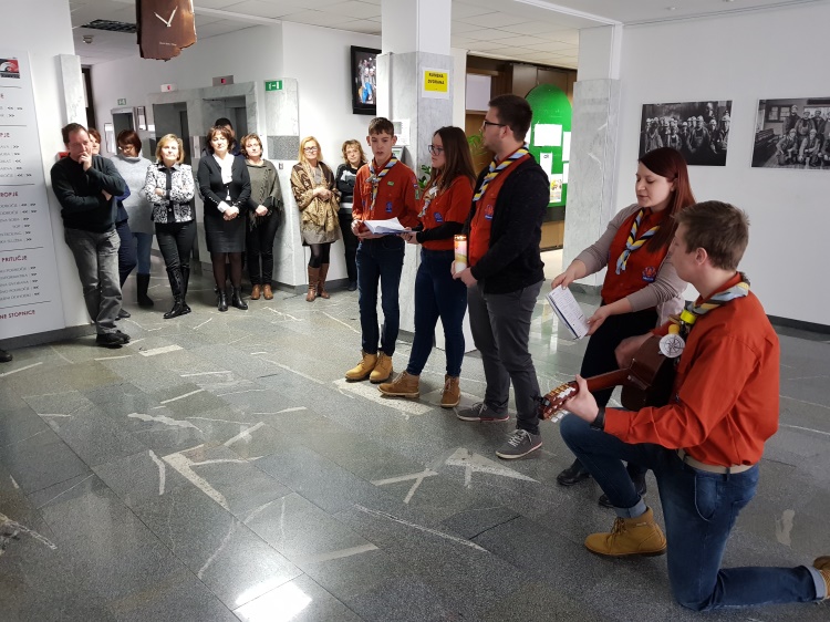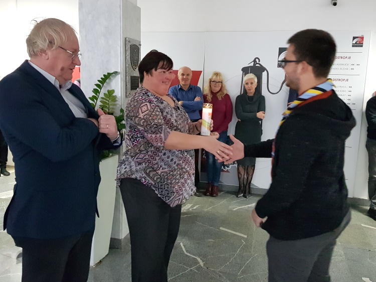 Plamen luči miru iz Betlehema, mednarodne dobrodelne akcije, je v avli upravne zgradbe Premogovnika Velenje zasvetil danes, v sredo, 20. decembra 2017, ko so jo k nam prinesli velenjski skavti.