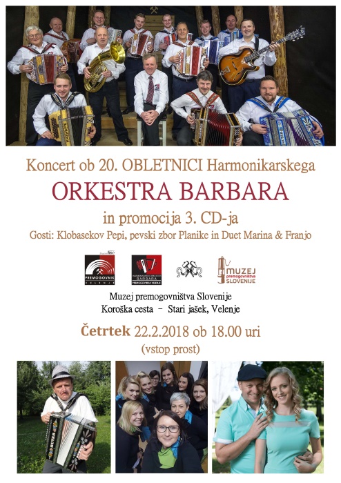 Prijazno vabljeni na koncert ob 20. obletnici Harmonikarskega orkestra Barbara. Koncert bo v četrtek, 22. februarja, z začetkom ob 18. uri v Muzeju premogovništva Slovenije.