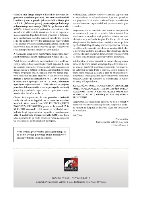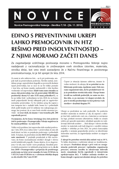 Izšle so Novice PV – Edino s preventivnimi ukrepi lahko Premogovnik in HTZ rešimo pred insolventnostjo – z njimi moramo začeti danes.