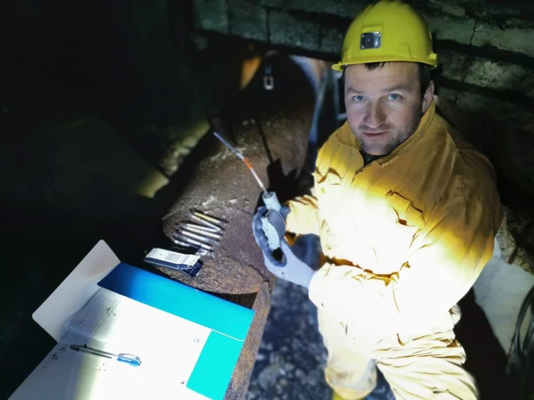 Decembra lani smo v obeh rudnikih opravili vnovični monitoring zračenja jamskih prostorov. Izvedli smo kontrolo jamskih plinov in meritve hitrosti pretoka zraka. Meritve plinov so bile izvedene na ustju jaška Labin in na vhodu nadkopa Rabac. Za določitev pretočne količine zraka smo v posameznih merskih profilih jamskih prostorov izmerili hitrost zračnega toka in presek. V času izvedbe monitoringa zračenja ni bilo zaznanih preseženih maksimalnih dovoljenih koncentracij merjenih plinov. Zaznati je bilo zgolj zrak z nekoliko večjo vsebnostjo vlage, kar pa je pričakovano, saj je vlažnost zraka v jamskih prostorih v tem letnem času povečana.
