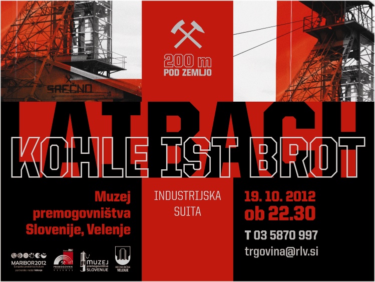 V rovih Muzeja premogovništva Slovenije v Velenju bomo v petek, 19. oktobra 2012, poleg že napovedanih koncertov skupine Laibach ob 18.30 in 20.30 izvedli še tretji koncert, ki se bo pričel ob 22.30 uri. Zanimanje za koncert Kohle ist Brot – industrijska suita v izvedbi članov Laibach, ki bodo prvič v svoji zgodovini nastopili skoraj 200 metrov pod zemeljskim površjem, je namreč tolikšno, da so karte za prva dva koncerta pošle že v nekaj dneh.